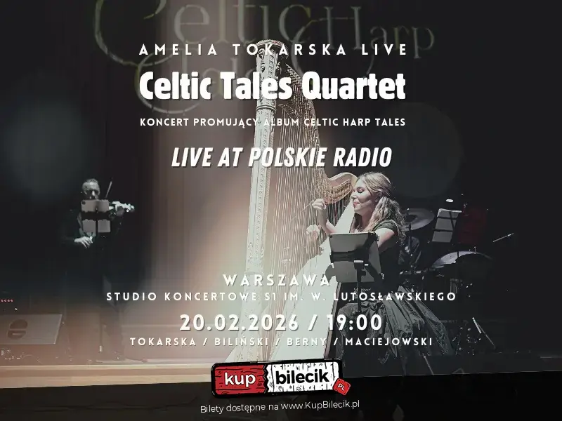 Amelia Tokarska - wybitna harfistka, ceniona za muzyczną wyobraźnię, wrażliwość i doskonałą technikę - zaprasza na koncert swojego zespołu Celtic Tales Quartet. Wydarzenie promuje album Celtic Harp Tales wydany przez wytwórnię DUX. To zupełnie nowe i świeże wydanie harfowej muzyki celtyckiej w unikalnym na skalę europejską wydaniu, w składzie z wybitnymi muzykami ze świata world music i jazzu - harfa, skrzypce elektryczne, perkusjonalia, handpan, fortepian, syntezatory i brzmienie rodem ze ścieżek filmowych.