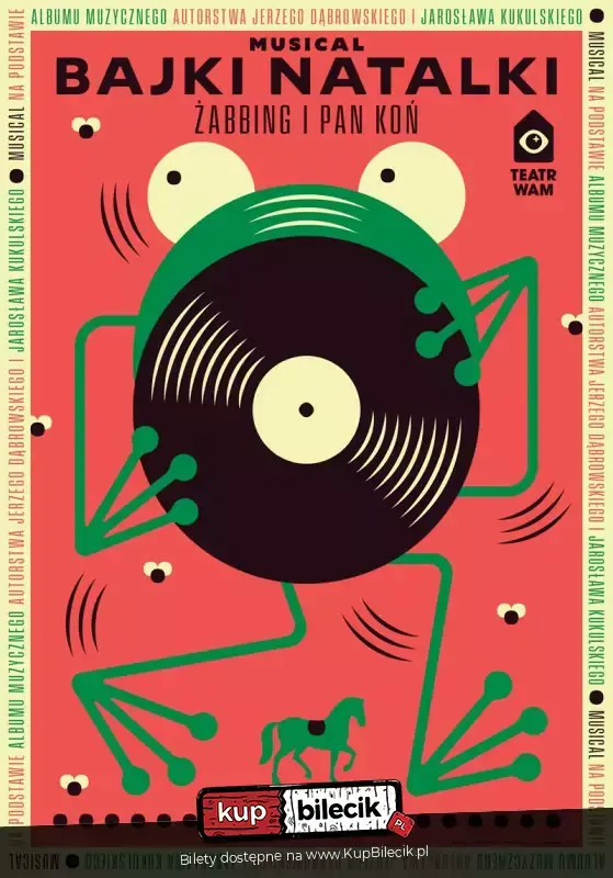 Natalia Kukulska oraz Paweł Podgórski zapraszają! Czy jesteście gotowi na musical w trakcie, którego fantazja zmienia rzeczywistość?! Żaby, Pan Koń, Pan Słoń to historia pełna nietuzinkowych zdarzeń, spotkań i relacji. Pocieszamy Beksę, odkrywamy inne oblicze tabliczki mnożenia, zauważamy pozytywne strony aktywności fizycznej, poznajemy wartość przyjaźni, uczymy się rozumieć czyjeś odmienne zdanie, a na koniec szalejemy na kolorowej i energetycznej dyskotece. Razem z nami konie, bóbr, dzik, kot, mysz, wilk, niedźwiedź, hipopotam i borsuk, które tanecznym krokiem zabierają widza do świata pełnego wyobraźni i uśmiechu. Po spektaklu spotkanie ze wszystkimi Artystami we foyer teatru. Wspólne zdjęcia, rozmowy i mnóstwo wspomnień do zabrania.