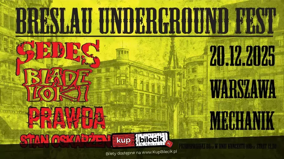 Czołówka Wrocławskiego Undergroundu z historią punk rocka w tle - niepowtarzalna okazja zobaczyć wszystkie, te kapele w jednym miejscu. SEDES, BLADE LOKI, PRAWDA, STAN OSKARŻENIA