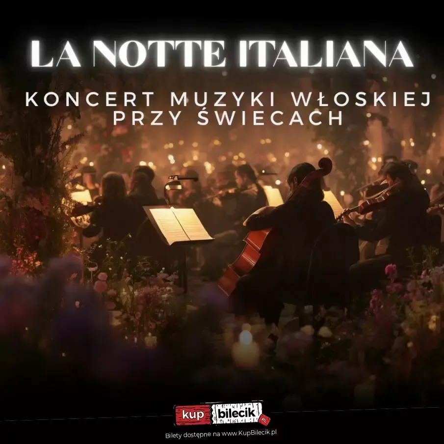 Everlight Concerts zaprasza na zmysłowy wieczór pełen południowego uroku, operowego kunsztu i włoskiej pasji. W otoczeniu setek świec zabierzemy Cię do serca Italii - od klasycznych arii, przez kultowe filmowe tematy, aż po najpiękniejsze współczesne piosenki włoskiej estrady. "La Notte Italiana" to koncert, który łączy elegancję i emocje, wywołując uśmiech, wzruszenie i zachwyt. Usłyszysz dzieła Vivaldiego, Pucciniego, Verdiego oraz utwory, które pokochał cały świat - od "Volare" po "O Sole Mio".