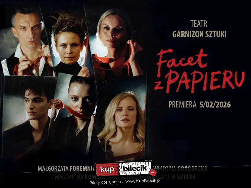 "Facet z papieru" w reżyserii Leny Frankiewicz i z gwiazdorską obsadą w nowej produkcji Teatru Garnizon Sztuki. Już 5 lutego 2026 roku Teatr Garnizon Sztuki zaprasza na premierę spektaklu "Facet z papieru" w reżyserii Leny Frankiewicz. Ta brawurowa inscenizacja sztuki Istvána Tasnádiego (Kartonpapa) mistrzowsko balansuje między groteską i czarnym humorem, a czułą opowieścią o tęsknocie, o radzeniu sobie ze stratą i walce o własne pragnienia.