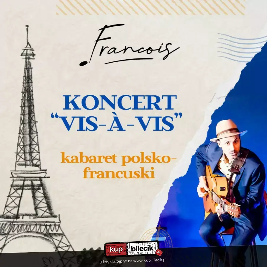 Spotkanie pełne muzyki, humoru i francuskiego uroku. Francois zabierze publiczność w podróż przez największe polskie przeboje po francusku (Zbigniew Wodecki, Czesław Niemen, Grzegorz Turnau i inni) i najpiękniejsze francuskie piosenki po polsku (Jacques Brel, Charles Aznavour i inni), łącząc klasykę francuskiej piosenki z kabaretową narracją. Piosenka, teatr i uśmiech - wszystko vis-à-vis z widzem.