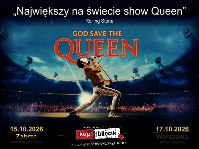 Koncerty God Save The Queen to dopracowane w każdym detalu show, łączące najwyższy poziom wykonawczy z autentyczną atmosferą koncertów Queen. W programie znajdą się największe przeboje zespołu, które na stałe zapisały się w historii muzyki rockowej. God Save The Queen to jeden z najbardziej cenionych na świecie zespołów tribute oddających hołd legendarnej grupie Queen. Zespół powstał w 1998 roku w Argentynie (obecnie często występuje także pod nazwą Dios Salve a la Reina) i zasłynął niezwykle wiernym odtworzeniem brzmienia, wizerunku oraz scenicznej charyzmy Freddiego Mercury'ego i całego Queen. Muzycy przykładają ogromną wagę do detali - od oryginalnych aranżacji i instrumentów, przez kostiumy, aż po charakterystyczne ruchy sceniczne. W ich repertuarze znajdują się największe hity zespołu Queen, takie jak Bohemian Rhapsody, We Will Rock You, We Are the Champions, Radio Ga Ga czy Somebody to Love. God Save The Queen koncertował na całym świecie, zdobywając uznanie zarówno fanów Queen, jak i krytyków muzycznych. Ich występy to nie tylko koncerty, ale prawdziwe muzyczne widowiska, które przenoszą publiczność w złotą erę rocka i pozwalają na nowo przeżyć magię zespołu Queen.