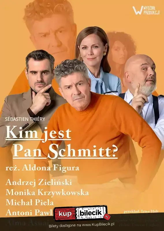 Kim jest Pan Schmitt? to błyskotliwa komedia absurdu, w której spokojne życie głównego bohatera rozpada się w jednej chwili. Nagle zmienia się jego nazwisko, przeszłość, mieszkanie… a nawet rodzina. Świat z uporem przekonuje go, że jest kimś, kim - według niego - nigdy nie był. To inteligentna, momentami niepokojąco zabawna opowieść o tożsamości, presji otoczenia i granicach kompromisu. Humor balansuje tu między sytuacyjnym absurdem, a bardzo ludzkim pytaniem: jak długo można bronić własnej prawdy? Przyjdź i sprawdź, czy nasz główny bohater - w tej roli Andrzej Zieliński - zdoła udowodnić kim naprawdę jest - zanim będzie za późno! Czeka Cię wieczór pełen niespodzianek, którego nie możesz przegapić!