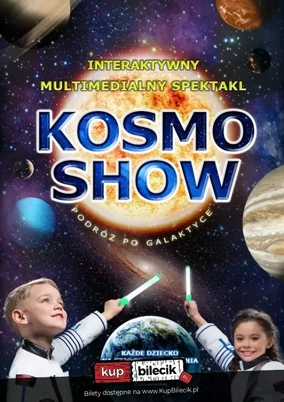 "Kosmo Show" to wspaniałe połączenie rozrywki, nauki i interaktywnej zabawy, które przybliży dzieciom tajemnice planet Układu Słonecznego i kosmicznych zjawisk. To spektakl, który rozbudza ciekawość i inspiruje do dalszego odkrywania wszechświata poprzez książki i filmy!