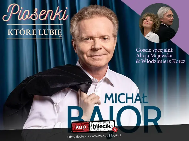 Kolejny recital Michała Bajora nosi tytuł "Piosenki, które lubię". W ciągu ostatnich tras koncertowych, z piosenkami z albumu "No, a ja?", usłyszeli Państwo utwory wybrane z dawniejszego repertuaru Artysty, przeplatane nowymi kompozycjami i tekstami Michała. W trakcie przeszło dwóch sezonów padało wiele pytań i muzycznych sugestii na temat tytułów piosenek, które chcieliby Państwo usłyszeć. A zatem Michał Bajor, z kilkuset napisanych dla niego utworów, wybrał kolejnych kilkanaście, które lubi szczególnie, a na których usłyszenie Państwo czekają. Od "Chciałbym", przez "La Boheme", po "Moją miłość największą".