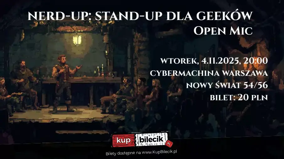 Nerdup Kolektyw zaprasza na kolejną edycję standupowego wieczora dla nerdów i geeków! Tym razem zaprosimy na scenę kilka nowych osób ze sceny komediowej, które zachęcone poprzednimi imprezami zgłosiły się do przetestowania swojego materiału. Poza nimi zobaczymy też na scenie kilku komików których już znamy z poprzednich wydarzeń, ale z nowymi materiałami.