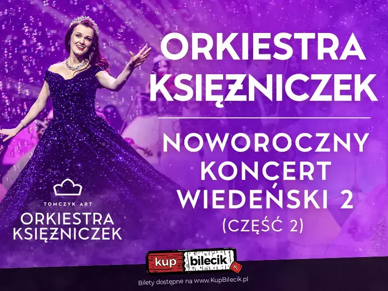 Noworoczny Koncert Wiedeński 2 (część 2.) Orkiestry Księżniczek to połączenie wiedeńskiej formy i kunsztu z młodością, wdziękiem, werwą i niespotykaną muzykalnością artystów wykonujących to widowisko. Zabrzmią największe, ponadczasowe i wiecznie bliskie sercom Melomanów przeboje króla walca - Johanna Straussa. Nie zabraknie także popisowych arii z "Księżniczki Czardasza", "Zemsty Nietoperza", "Barona Cygańskiego", "Wesołej Wdówki", "Krainy Uśmiechu" oraz takich dzieł literatury muzycznej jak: "Can-Can""Aria ze śmiechem" Jacques Offenbach'a, "Taniec Węgierski" Brahmsa czy "Granada". Nie zabranie także wielu muzycznych niespodzianek oraz spektakularnego show, do którego na przestrzeni lat przyzwyczaiła melomanów z całego świata jedyna na świecie Orkiestra Księżniczek!