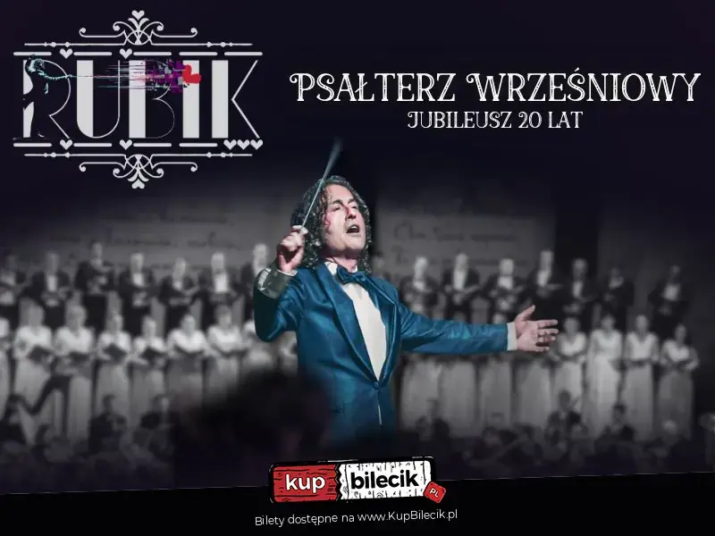 Zanurz się w niezwykłym świecie muzyki i emocji podczas jubileuszowego koncertu Piotra Rubika, z okazji 20-lecia powstania oratorium "Psałterz wrześniowy" - dzieła, które na trwałe zapisało się w historii polskiej muzyki współczesnej. Zabrzmią na nowo utwory do poruszających tekstów Zbigniewa Książka - pełne zadumy, nadziei i duchowej refleksji. Oratorium, które od premiery w 2006 roku wzruszyło setki tysięcy słuchaczy, powraca w wyjątkowej, jubileuszowej odsłonie z ponad 100 osobami na scenie.