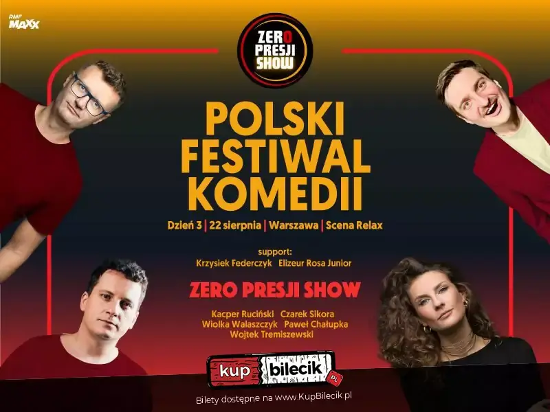 22 sierpnia (piątek) - "Zero Presji SHOW, Start sezonu trzeciego" - 3 dzień Polskiego Festiwalu Komedii / PeFKa 2025