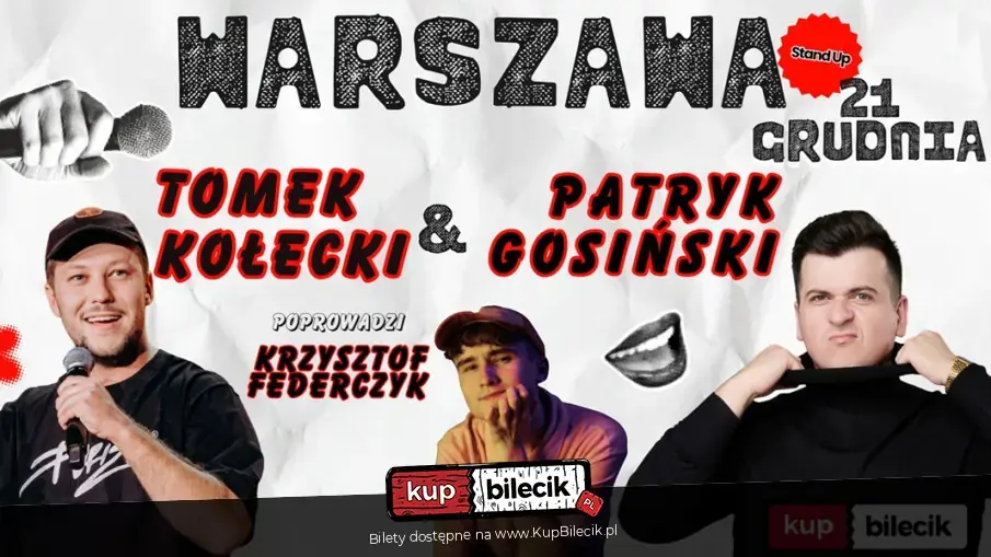 Tomek Kołecki oraz Patryk Gosiński zapraszają testy swoich nowych programów w kameralnej atmosferze praskiego Bazar bistro. Nowe teksty pośrednio już sprawdzone, które podczas tego wieczoru będą szlifowane. Ilość biletów mocno ograniczona, jedynie 50 sztuk! Dodatkowo całość poprowadzi objawienie programu masz minutę Krzysztof Federczyk. Do zobaczenia!