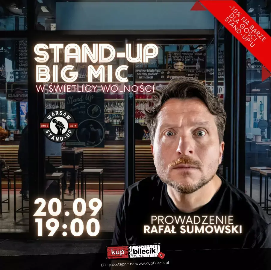Piątkowy Stand-up w Świetlicy Wolności! W każdy piątek o 19.00 zapraszamy Was na stand-up do Świetlicy Wolności. W ten piątek komicy będą testować swój materiał na otwartej scenie - na której każdy może spróbować swoich sił. Będzie to znakomita okazja do zobaczenia komedii na żywo. Imprezę prowadzi - Rafał Sumowski!
