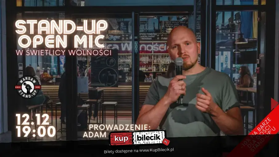 W każdy piątek o 19.00 zapraszamy Was na stand-up do Świetlicy Wolności. W ten piątek komicy będą testować swój materiał na otwartej scenie - na której każdy może spróbować swoich sił. Będzie to znakomita okazja do zobaczenia komedii na żywo.
